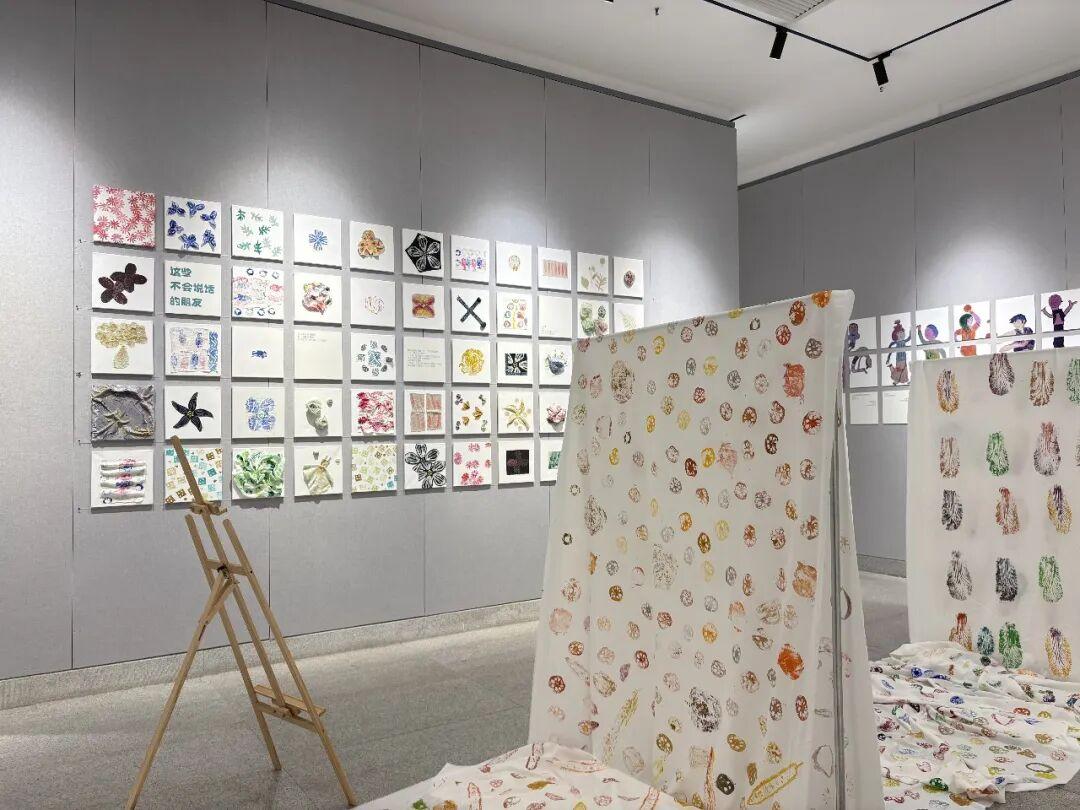 “以前我就是个围着家庭转的主妇,买菜做饭是生活的全部。现在有了艺术的支撑,感觉自己提升了很多,画画的时候特别开心,能完全沉浸其中。”逸飞妈的分享,道出了众多妈妈艺术家的心声。她喜欢将生活点滴记录在绘画本上,空闲时就画几笔,孩子看到她的作品总会说“好看”,还会傲娇地宣称自己画得更好。此次展览的布艺作品,妈妈们仅用三天就完成了100米印染布的创作,还有不少用碎布料拓印制作的画作和公主裙,这些作品都承载着她们对生活的热爱。
