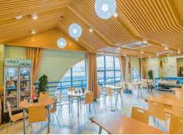 规模宏大,拥有各种标间、套间共400余间(套),床位800张,可满足不同家庭、不同人数的养老需求。房间内部配套堪称“养老界的顶配”,独立卫生间、24小时热水、液晶彩电、简易小厨房、电磁炉、抽油烟机、冰箱、空调、洗衣机、衣柜、床头柜、双人床(高级护理床、单人床可选)、写字桌、沙发、古木茶几等设施一应俱全,纯净饮用水直接入户,宽带全覆盖,冬天地暖供暖,全方位保障老人的居住舒适度;同时配备无障碍设施、防滑地板,走廊、浴室、恭桶旁均设有扶手,细节处筑牢老人安全防线。院内文娱设施丰富,多功能厅、宴会厅、阅览室、书画室、台球室、麻将室、老年KTV、健身房等应有尽有,满足老人各类休闲娱乐需求。
